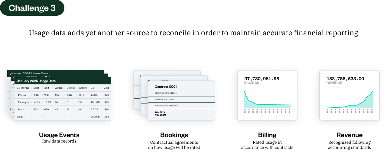 Because legacy finance systems were built for predictable, recurring models, not dynamic, granular usage. As usage data explodes, it’s hard to track, bill, and recognize revenue accurately across disconnected systems.